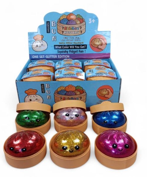 Mystery Glitter Dumplings – Buns Smiling Faces in Steamer Assorted Colors (1634) VERY LIMITED SUPPLY