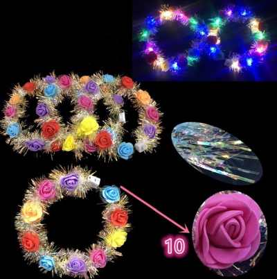 Floral LED Headband Roses and Tinsel (6352)