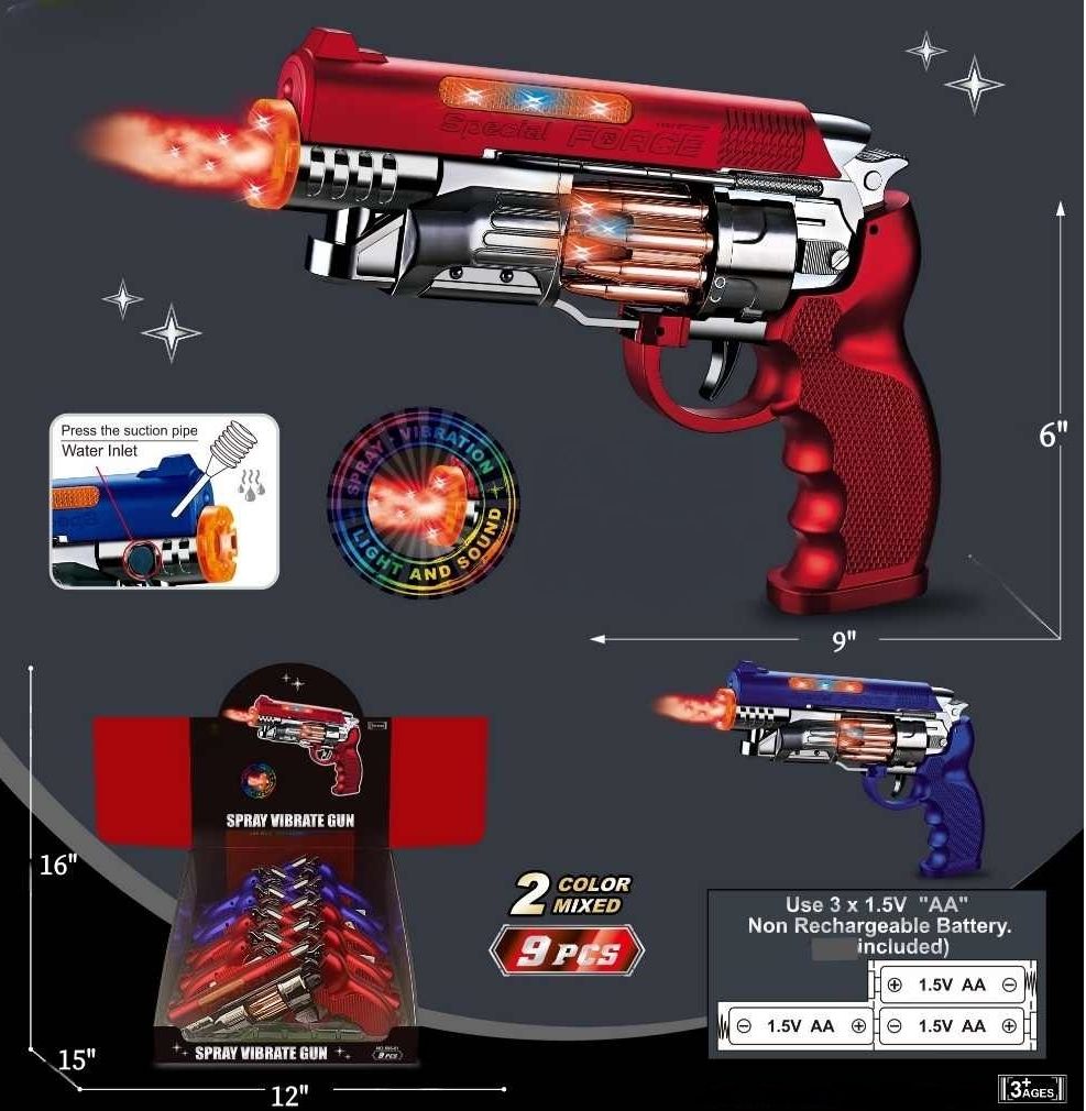 Battery Operated Revolver Style Pistol Lights and Sound – Spray Effect (2479) OUT OF STOCK