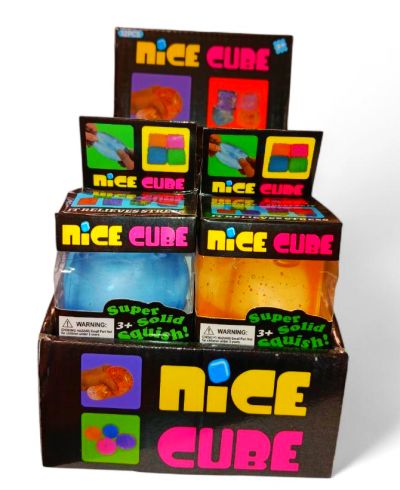 Colorful dough cube individually boxed. Cube is 2″ squared and is a slow rise squishy novelty.